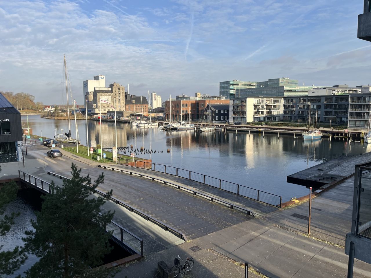 Ligger i den ikoniske bygning ”Stævnen”, et eksklusivt byggeri fra 2009 som er anerkendt for sin kvalitet og unikke tagstruktur, der synes at stræbe mod både himmel og havn samt for, at have sat en eksklusiv standard for området.