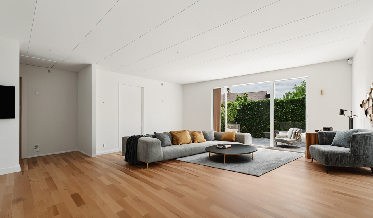 Entré med god plads til beklædning. Lyst og indbydende badeværelse med bruseniche og plads til både vaskemaskine og tørretumblere. Stor stue med skønt lysindfald fra sydvest og adgang til have og terrasse. Skønt køkken alrum i åben forbindelse til stuen og med adgang til morgenterrassen mod nordøst. 3 store og gode værelse, hvoraf det ene har skabsvæg.